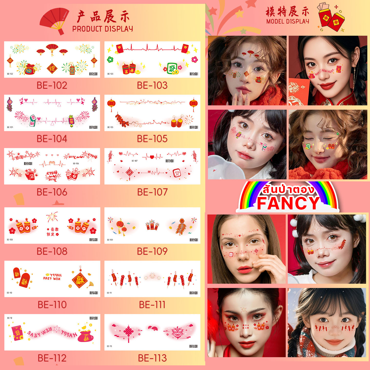 Tattoo ตรุษจีน สติ๊กเกอร์แต่งหน้าตรุษจีน